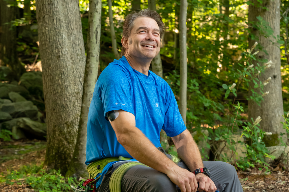 Certified rock climb instructor, Paul leads outdoor adventures for people with diabetes. With Eversense he enjoys the flexibility to remove the transmitter when he needs to.
