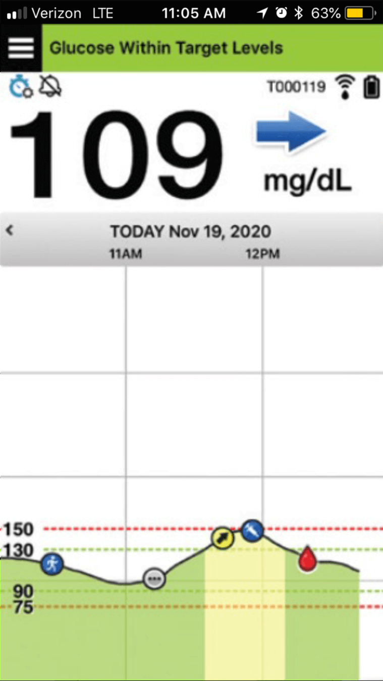 The trend arrow is an especially powerful benefit of CGM. It allows you to anticipate your future glucose level and proactively adjust your diabetes treatment decisions as needed.