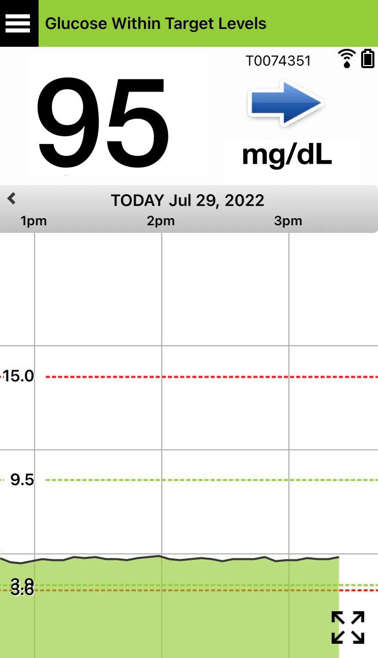 Looking at the My Glucose Home screen, you’ll notice the transmitter battery icon on the top right is black.