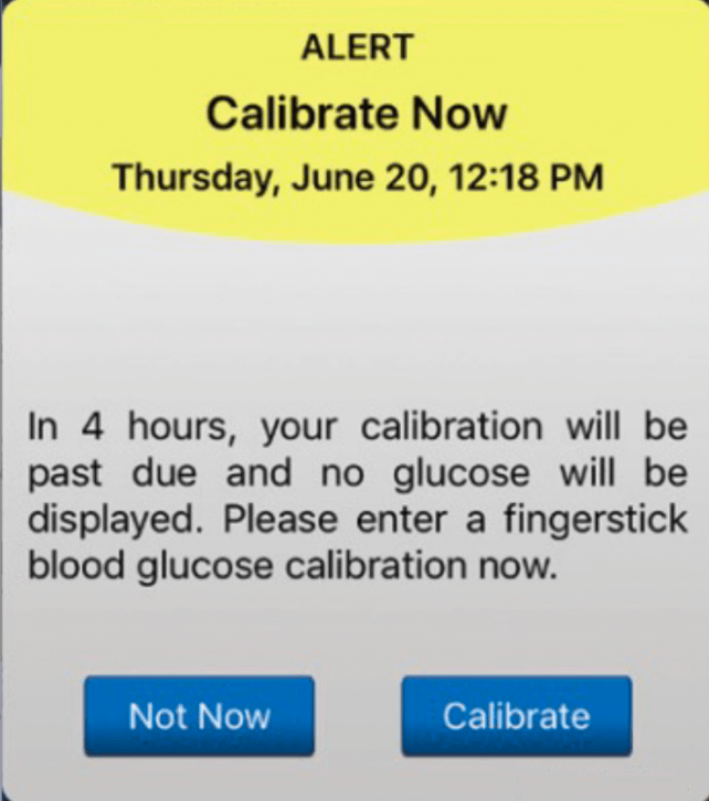a single calibration is needed each day. So, you’ll see your Calibrate Now alerts every 24 hours.