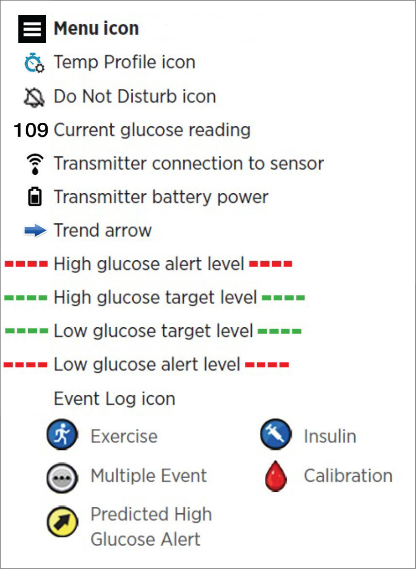 Any event that you enter into your app – such a calibration, meal, exercise or insulin – or any alerts you receive - show up on your trend graph with an icon.