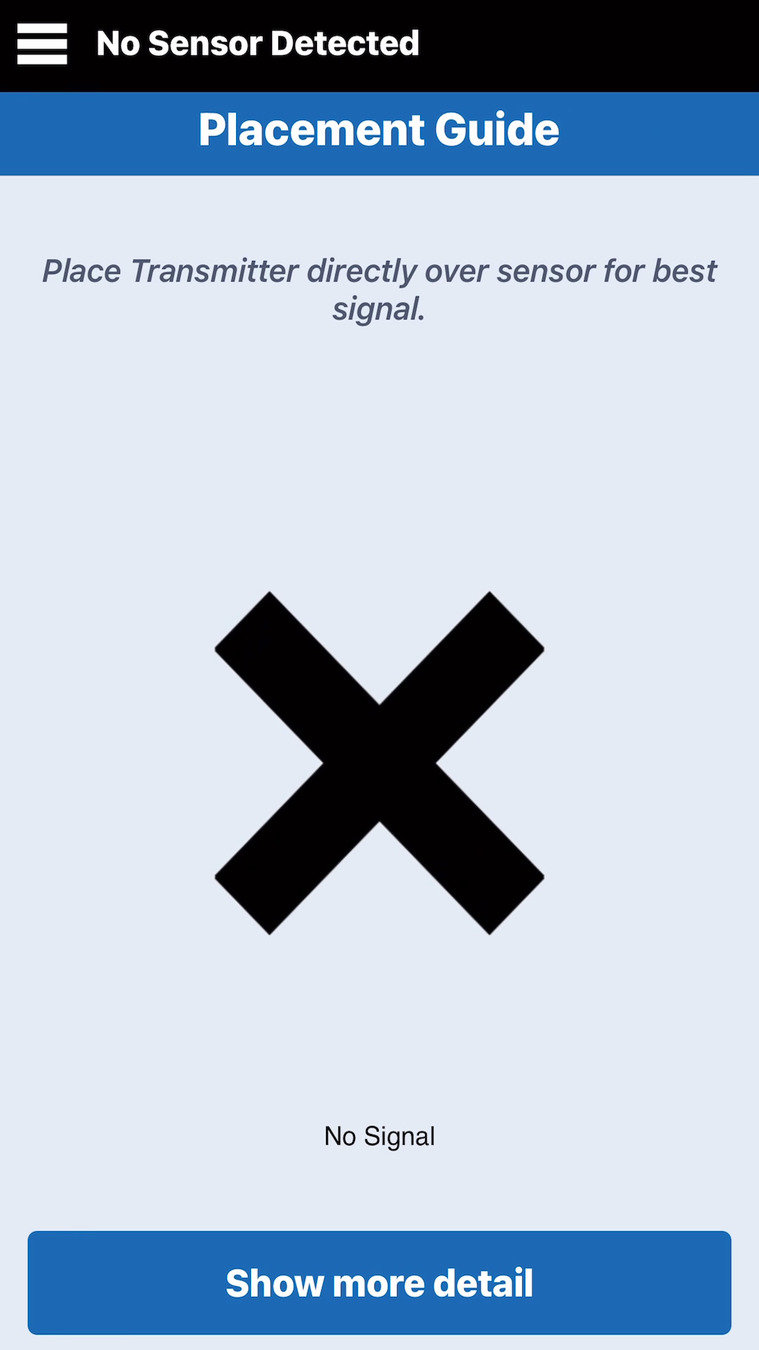 The app status bar will say either Warm-Up Phase, or No Sensor Detected.