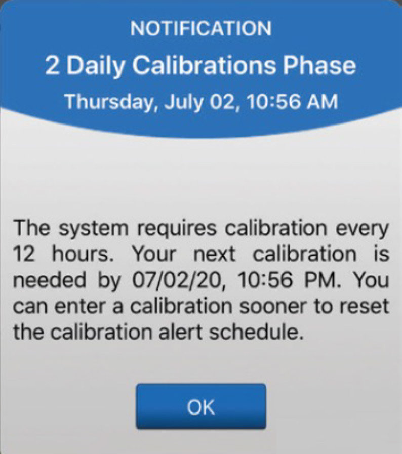 If you get the 2 Daily Calibrations Phase notification, this means 2 calibrations are required each day. And, you’ll