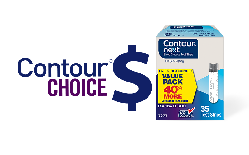 *Valid for up to 12 uses through 12/31/2023. ELIGIBLE PRIVATELY INSURED PATIENTS pay the first $15 and can save up to $105 of remaining copay based upon prescription quantity and insurance coverage. CASH PATIENTS pay the first $15 and can save up to $66 on 100 count test strips. Excludes 15, 35 and 70 count over the counter test strips. PATIENTS are responsible for any remaining balance after discount is applied. Patients pay all applicable taxes and fees. RESTRICTIONS: Offer not valid for prescriptions reimbursed under Medicaid, Medicare drug benefit plan, Tricare or other federal or state health programs (i.e. medical assistance programs). If patient is eligible for drug benefits under any such program, offer not valid. Cash Discount Cards and other non-insurance plans are not valid as primary under this offer. Visit ContourChoice.com for additional details and Restrictions. Patient: BY USING THIS CARD, YOU UNDERSTAND AND AGREE TO COMPLY WITH THE RESTRICTIONS. YOU ALSO CERTIFY THAT YOU WILL COMPLY WITH ANY TERMS OF YOUR HEALTH INSURANCE CONTRACT REQUIRING THAT YOUR PAYOR BE NOTIFIED OF THE EXISTENCE AND/OR VALUE OF THIS OFFER. Void where prohibited by law. This offer cannot be combined with any other offer. Ascensia Diabetes Care reserves the right to cancel or change this offer at any time and without notice. For Questions call 1-855-226-3931.